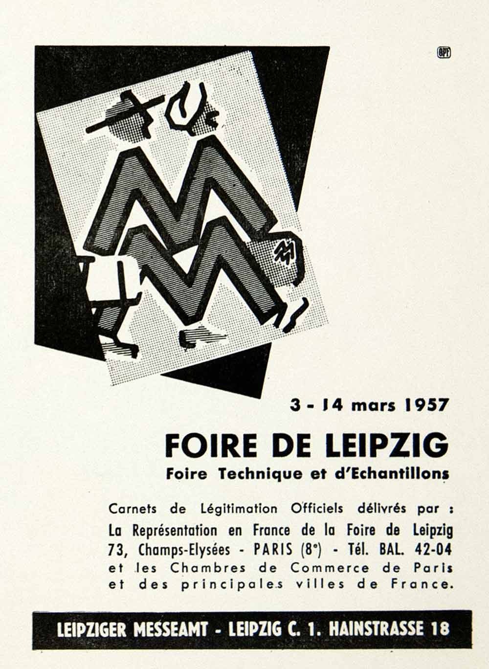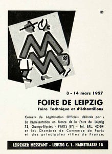 This is an original 1957 black and white print ad for the Leipzig Fair in Germany which took place in March of that year.