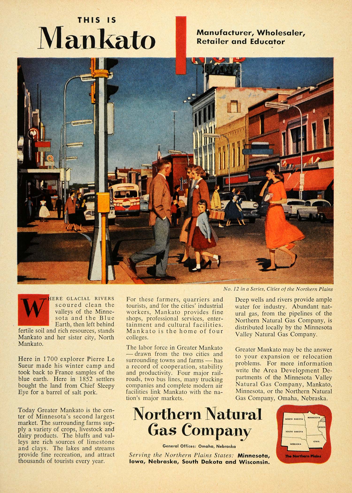 This is an original 1957 color print ad for the Northern Natural Gas Company located in Omaha, Nebraska. One of a rare series of Northern ads promoting different midwest and northern midwest cities.