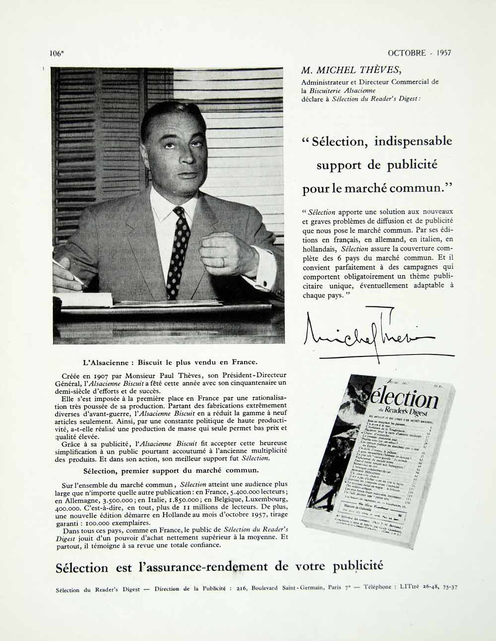 1957 Ad Selection Readers Digest French Michel Theves L'Alsacienne Biscuit VEN1