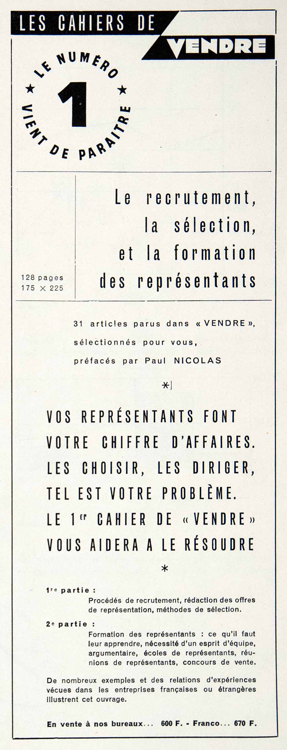 Les Cachiers de Vendre, which featured a collection of articles chosen from