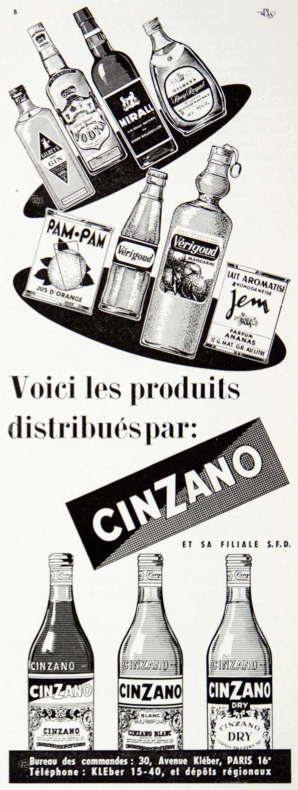 This is an original 1957 black and white print ad for Cinzano wines, liquor and beverages. Their main offices were located at 30 ave Kléber, Paris, France.