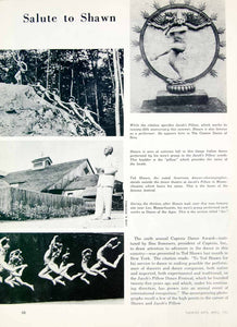 This is an original 1957 one-page black and white print article, with halftone illustrations, about Ted Shawn (1891-1972), the famous dancer and choreographer. At the time, he was the recipient of the sixth Annual Capezio Dance Award.