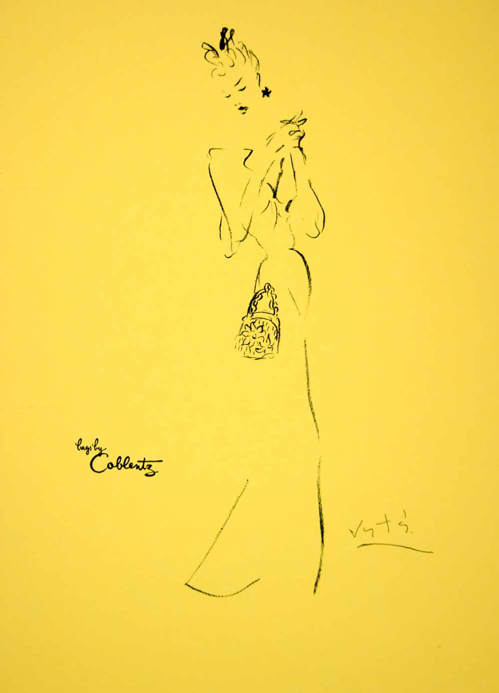 1957 Lithograph Marcel Vertes Fashion Art Model Coblentz Handbags Purse AEF6