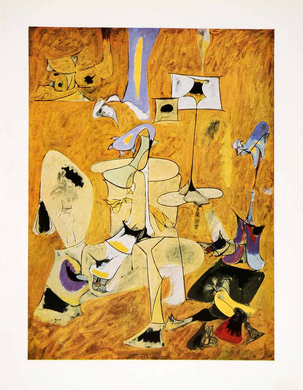 This is an original 1957 color print of what we can guess was his second engagement. Arshile Gorky was Armenian but moved to America at the age of 16. He enrolled in the New School of Design in Boston and was influenced by Impressionism, but his work was more postimpressionistic. Later in his career he ventured into Cubism and Surrealism. He was deemed the Father of Abstract Expressionism.
