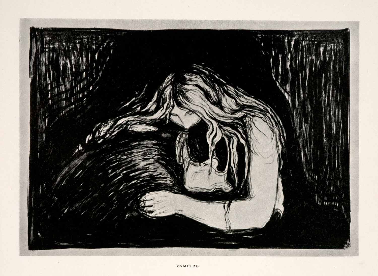 1957 Print Edvard Munch Vampire Femme Fatale Domination Love Pain Couple Art