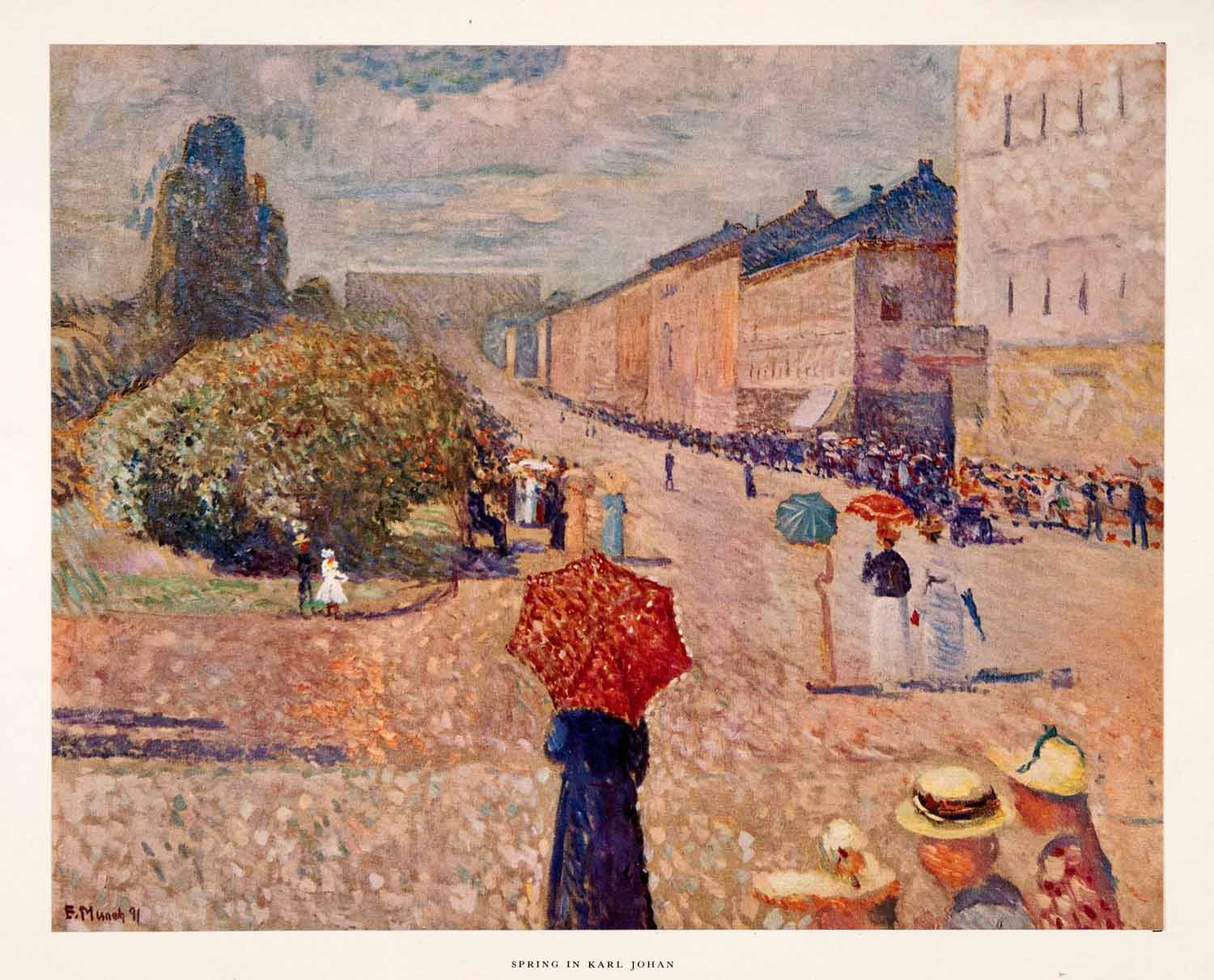 1957 Tipped-In Print Edvard Munch Spring Day Karl Johan Street Bright Colorful