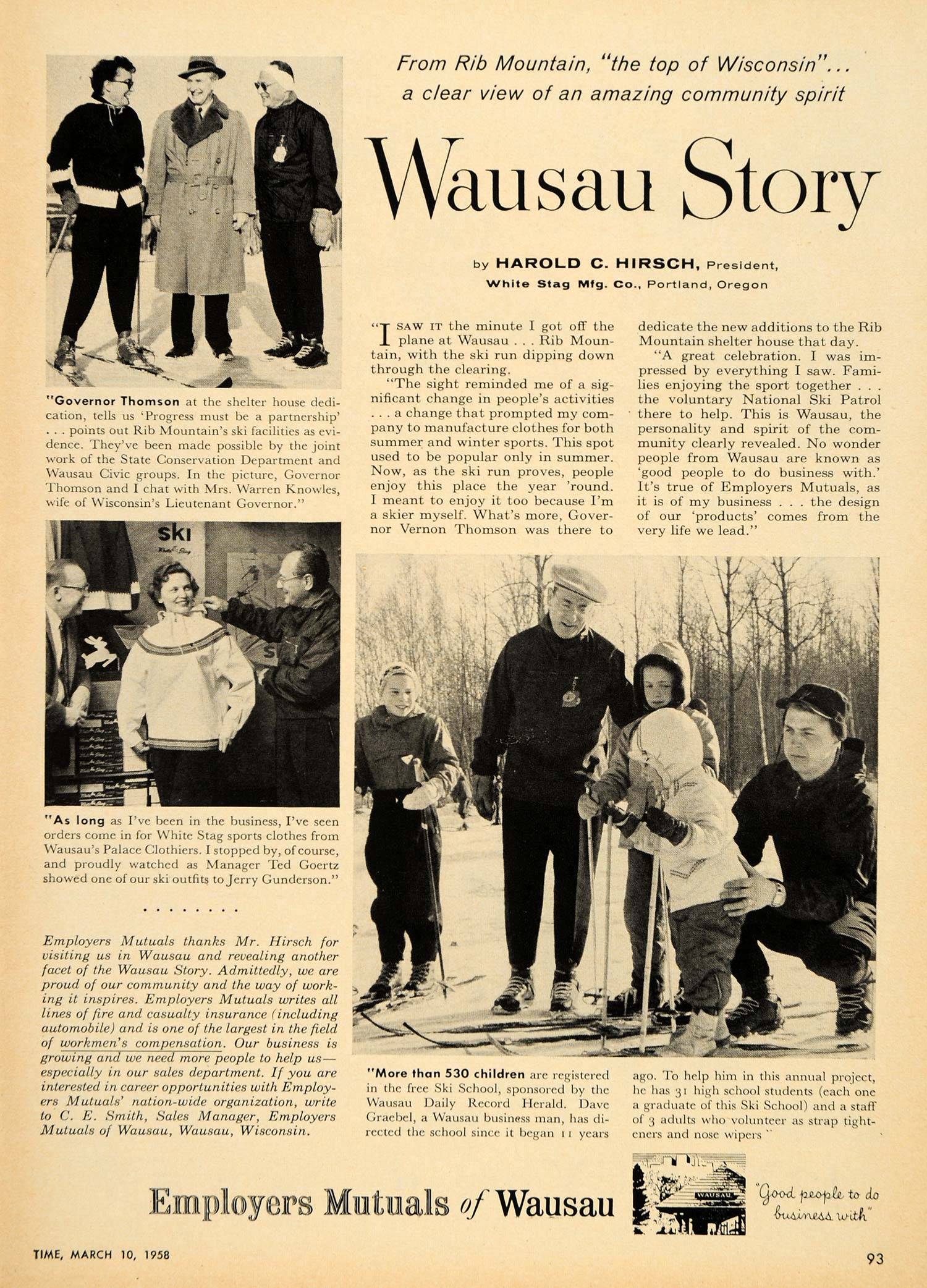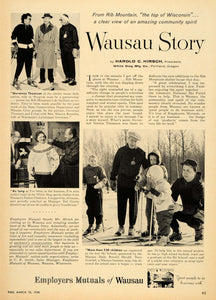 Keywords specific to this image: Snow Skiing, Family, Wausau Wisconsin, Governor Thomson, Rib Mountain Ski Hill and Resort, State Conservation Department and Wausau Civic groups, Warren Knowles, Wisconsin's Lieutenant Governor, C.E. Smith, Wausau Daily Record Herald, Dave Graebel, Vernon Thomson Vintage Advertising