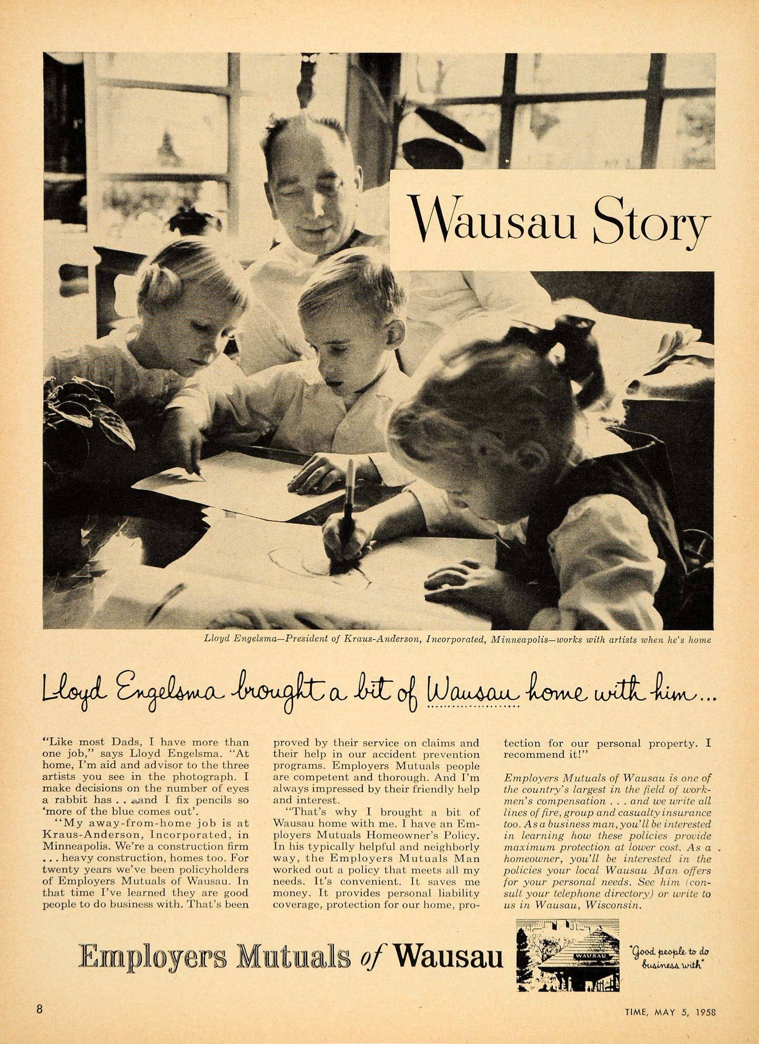 This is an original 1958 black and white print ad for Employers Mutuals of Wausau.