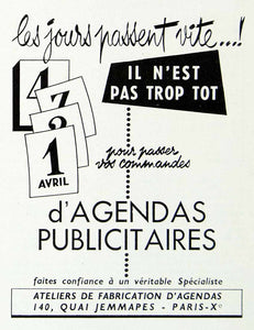 1958 Ad French Advertising Agenda Calendar Day Planner Atelier 140 Quai VEN1