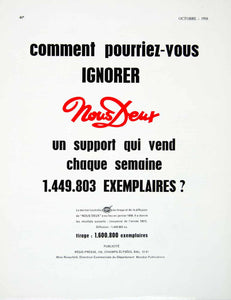Period Paper is pleased to offer a collection of vintage French advertisements from the 1950s featured in Vendre magazine. Marketed to business owners in France, the ads they ran were centered around the French workplace and focused on things like up-and-coming machinery and technologies, advertising agencies and methods to increase productivity and sales. Perfect for the vintage collection or Francophone, they provide insight into the French business world of the 1950's and many of the bold graphics would look phenomenal matted and framed.