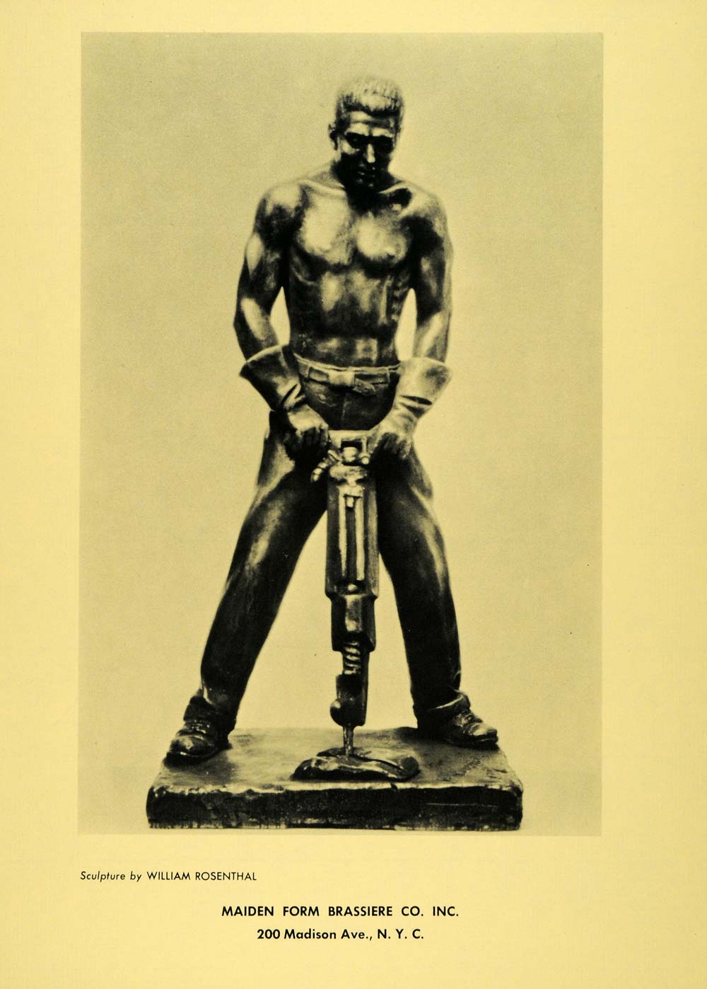 This is a rare original 1958 halftone print for the Maiden Form Brassiere Company, Inc., located at 200 Madison Avenue in New York City. This print features an image of a sculpture by William Rosenthal. Limited Edition Original halftone print of 2000.