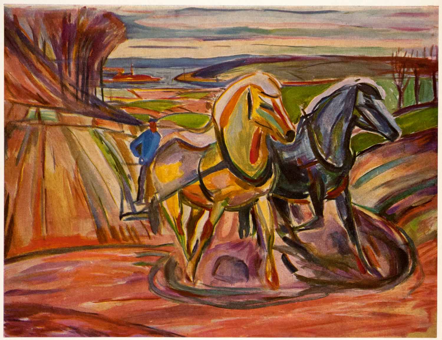 1958 Tipped-In Print Edvard Munch Spring Ploughing Plow Horse Landscape Farm Art