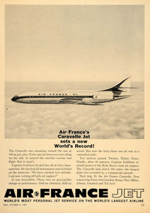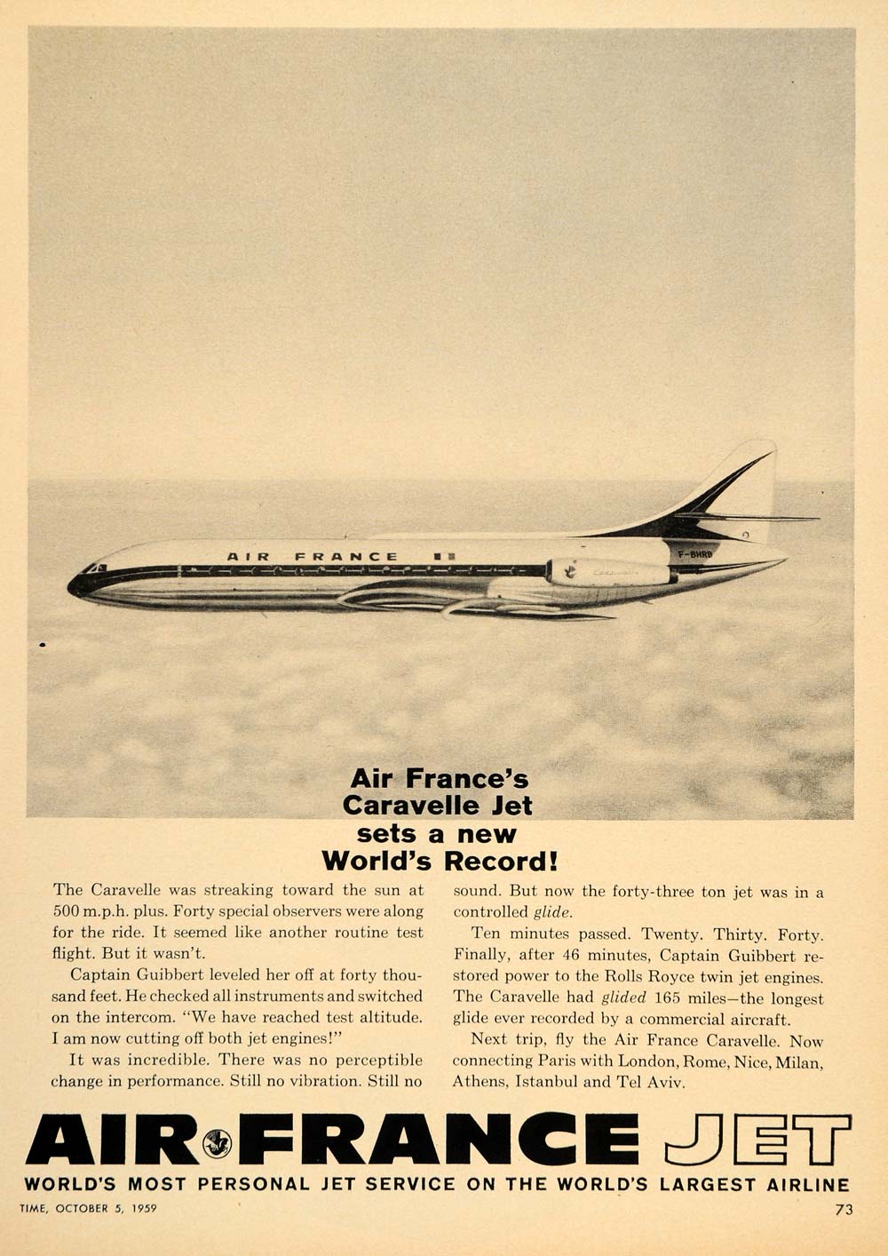 This is an original 1959 black and white print ad for Air France's Caravelle Jet from Air France located in Montparnasse, Paris. This airline is still currently an airline in France.