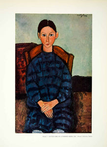 1959 Print Girl Striped Dress Blue Portrait Amedeo Modigliani Couch Seated XAMA1