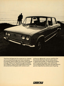Keywords specific to this image: Vintage, Four Speed Stick Shifts, Four Wheel Disc Brakes, Reclining Bucket Seats, Radial Tires, Ferrari, Maserati, Lancia, Seaside, Ocean Shore, Romantic Couple Vintage Advertising