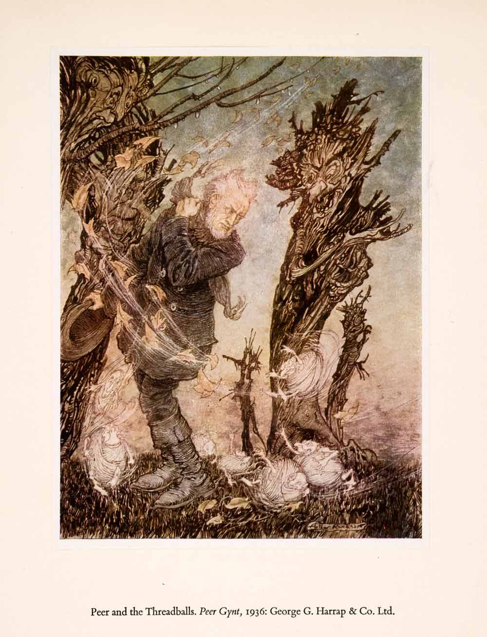 1960 Tipped-In Print Arthur Rackham Art Peer Gynt Threadballs Creepy Wind XAN8