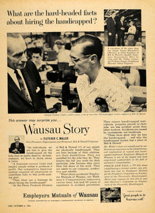 This is an original 1961 black and white print ad for the Employers Mutuals of Wausau. This ad is titled "Wausau Story", it is written by Fletcher C. Waller the vice president of the Bell & Howell Company.