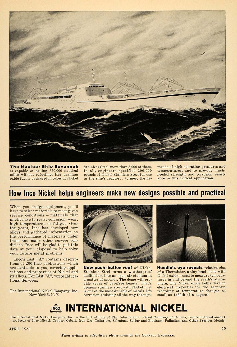 This is an original 1961 black and white print ad for the International Nickel Company, Incorporation.