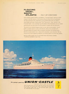 This is an original 1961 color print ad for travel to Africa via the ships of the Union-Castle Line, with an illustration of their newest mailship, the RMS