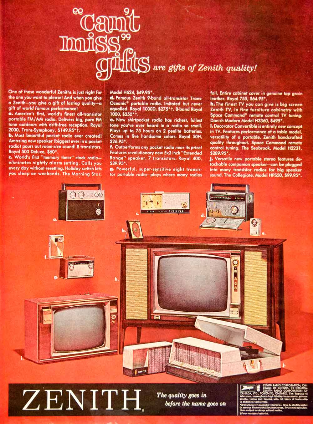 1961 Ad Vintage Zenith Television TV Transistor AM/FM Radio Phonograph YMM4