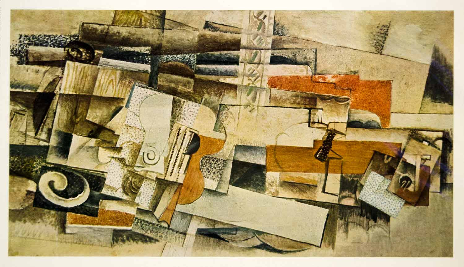1961 Georges Braque Man Guitar Cubism Color Art Print - ORIGINAL