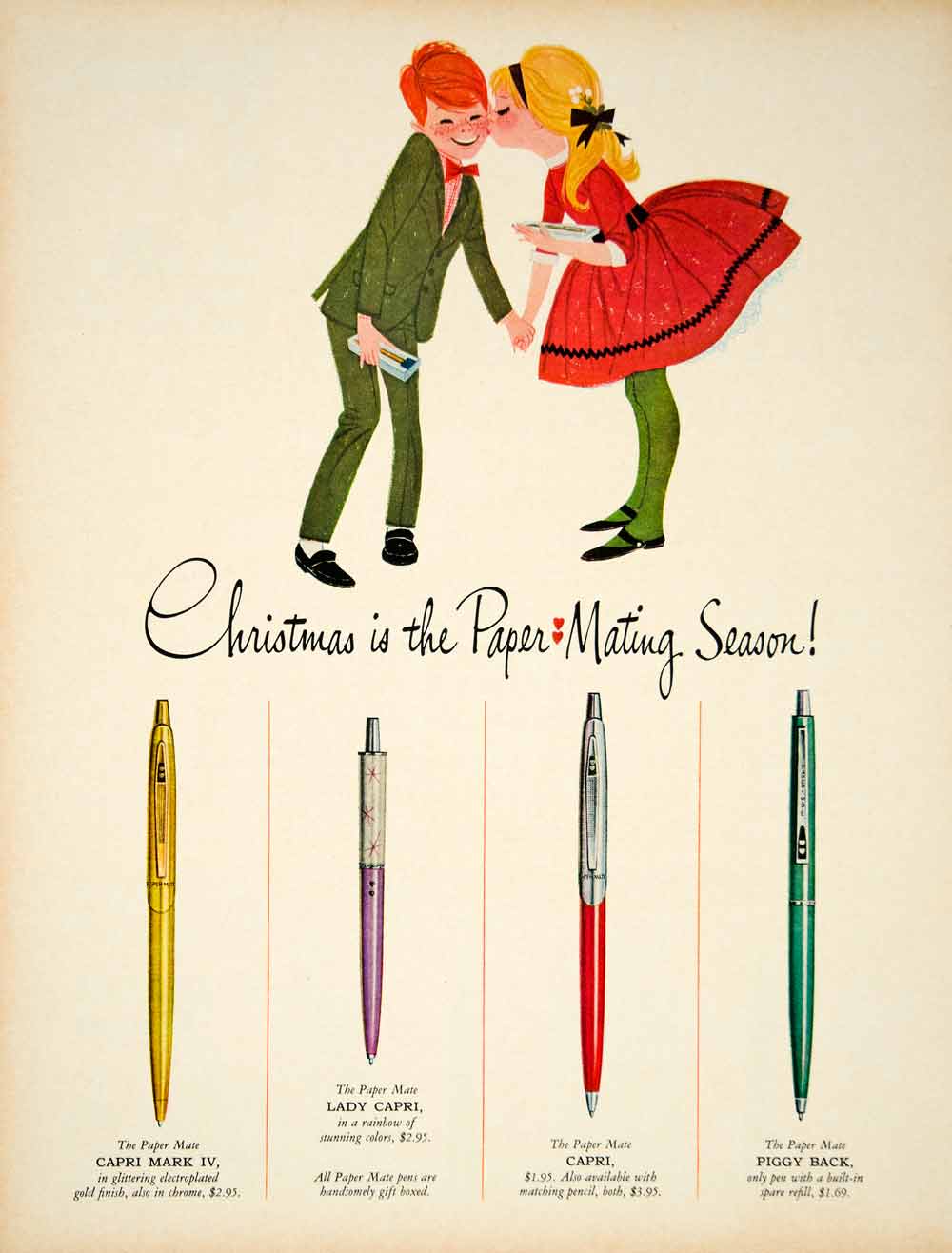 1962 Ad Paper Mate Ball Point Pens Lady Capri Mark IV Piggy Back Boy Girl YMM5