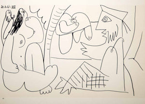From 1959 to 1961 Pablo Picasso worked on a series of drawings and paintings that were inspired by the famous oil painting by �douard Manet "Le D_jeuner sur l'herbe" ("The Luncheon on the Grass") created in 1862-1863. Manet's painting featured a female nude figure and a partially dressed bather at an outdoor picnic with two fully dressed men. Picasso offers his interpretations of this bucolic scene (which was considered quite risque in 1863) in our collection of original photolithographs from 1962.