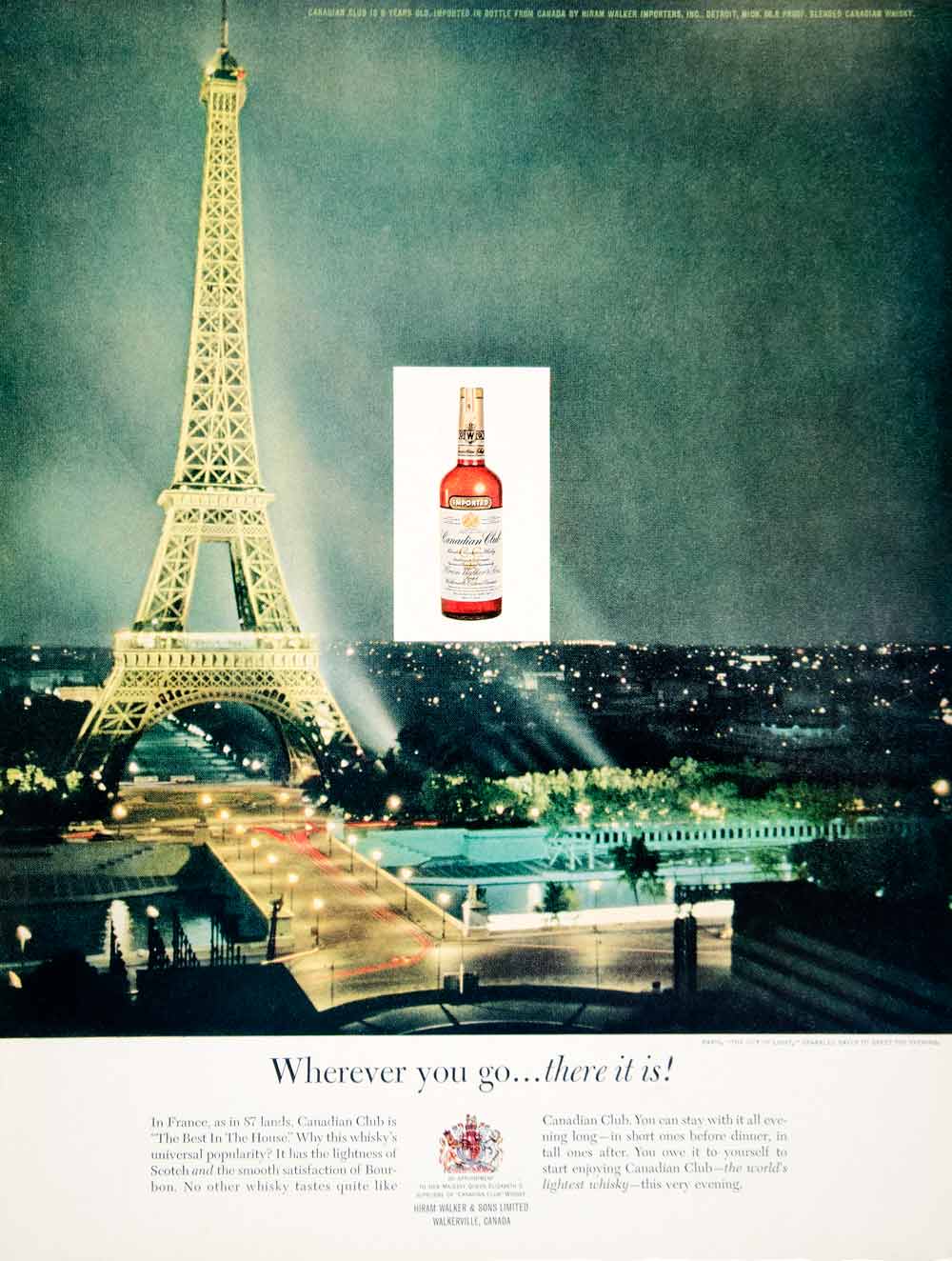 1963 Ad Canadian Club Whisky Eiffel Tower Paris Night Lights Hiram Walker YMM6