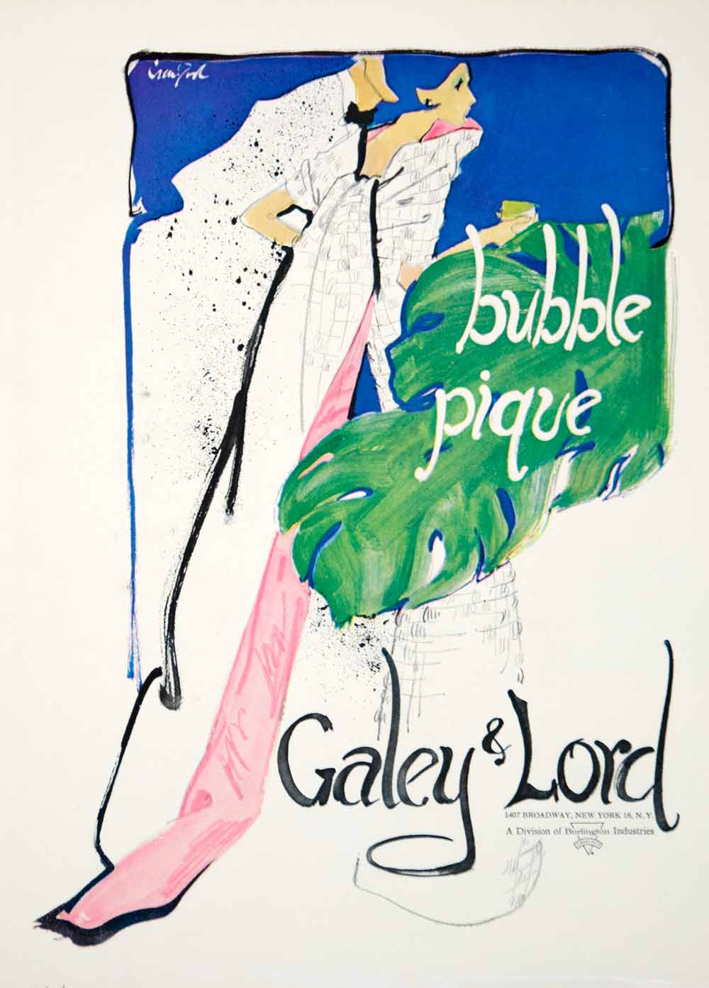 This is an original 1963 color print ad for bubble pique fabric made by Galey & Lord, manufacturer of fabrics, a Division of Burlington Industries.