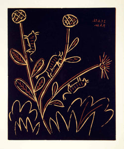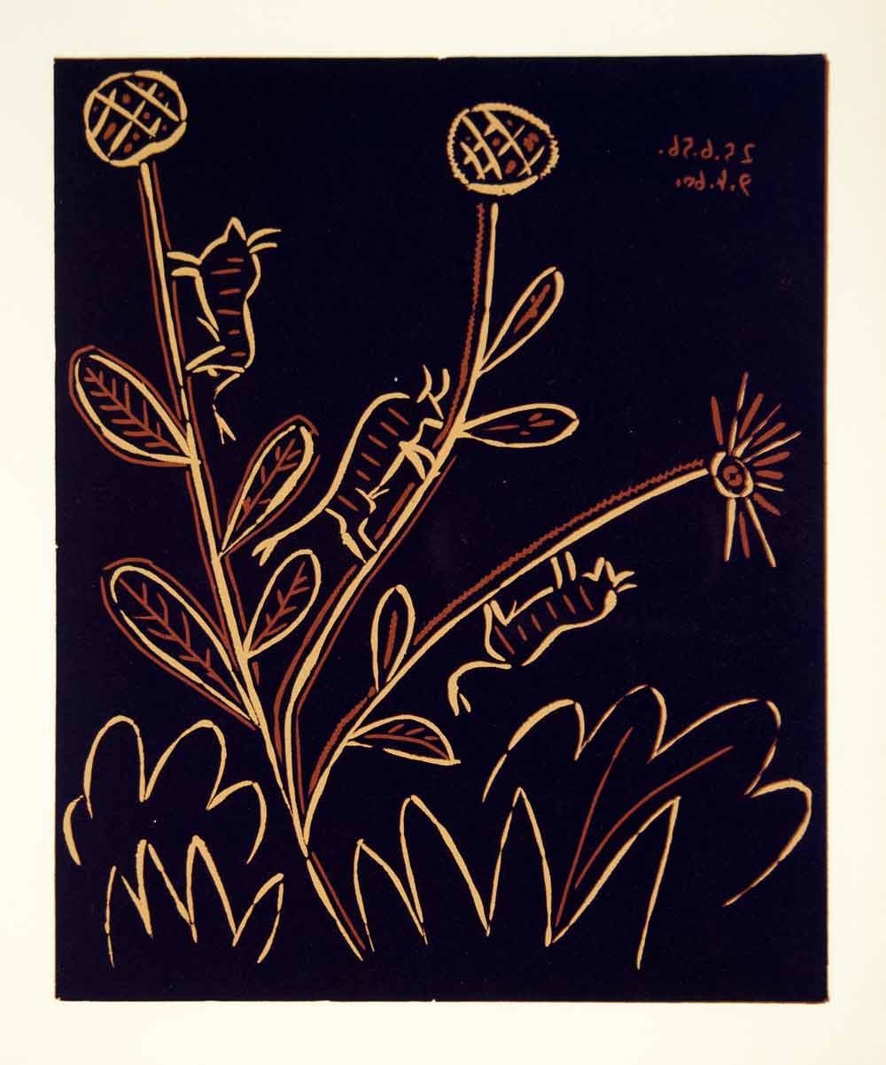 1963 Lithograph Pablo Picasso Bull Flowers Linocut Abstract Modern Art UNUSUAL