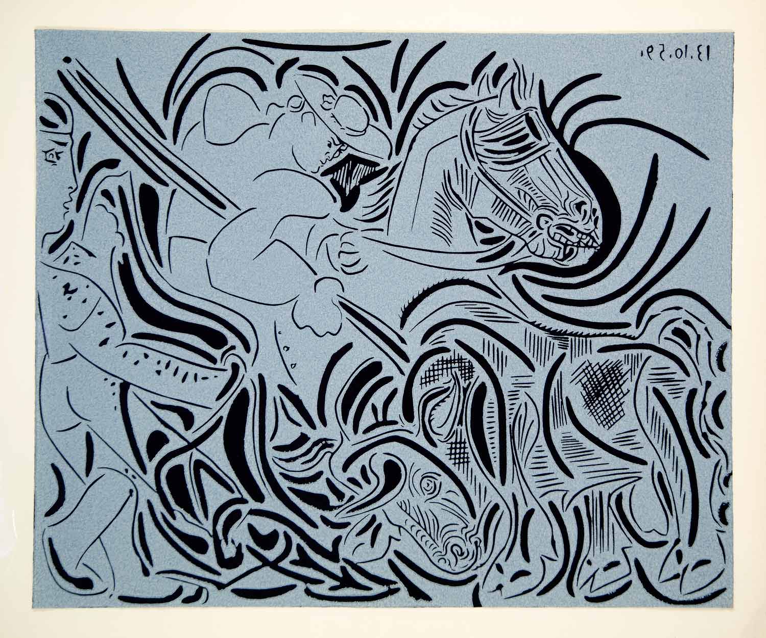 1963 Lithograph Pablo Picasso Picador Horse Goading Bull Bullfight Linocut Art