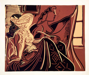 1963 Lithograph Picasso Nude Art Female Two Women Window Linocut Abstract Art