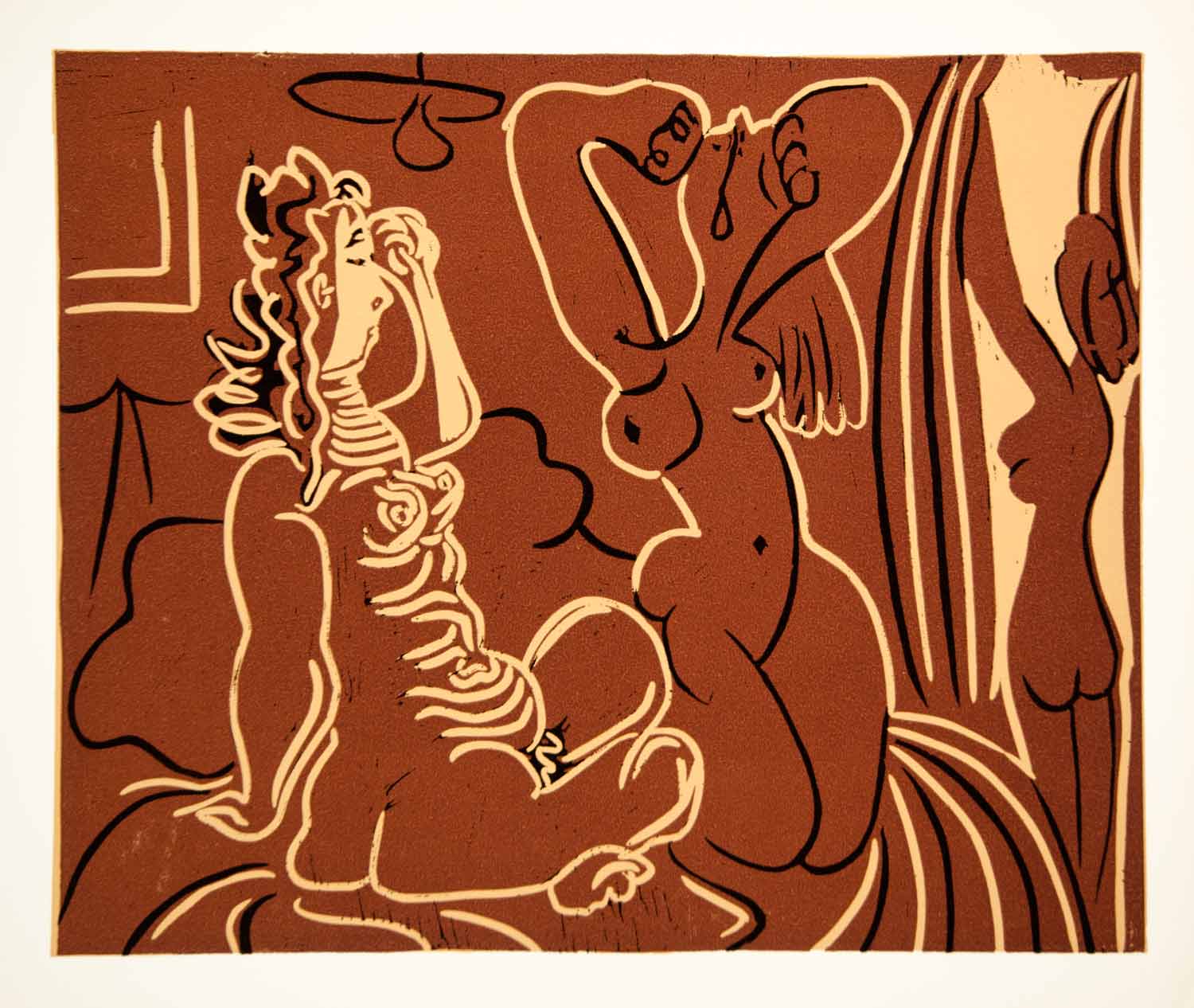 1963 Lithograph Picasso Three Nude Women Female Figures Linocut Abstract Art