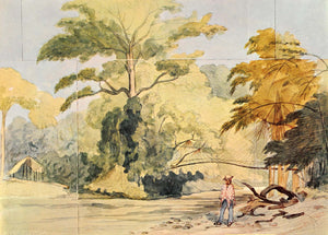Edward Walhouse Mark was born in Malaga, Spain in 1817 where his father was head of the English Consulary. Arriving in Bogota, Colombia in 1843, Edward Mark served for 10 years as vice-consul, general consul, and business officer to Great Britain. His techniques were influenced by the great school of English water coloring developed from the end of the 18th century to the beginning of the 19th century. During these years of service, he created many sketches and watercolors, 152 of which are entitled "The Color of an Age" and are presented as fine prints. Originally acquired from a London auction by Rene Van Meerbeke, this collection of 152 watercolors was returned to Colombia, where it was originally created by Edward Walhouse Mark. Later, formally owned by the Colombian Bank of the Republic (Banco de la Republica), it was preserved as an important patriotic and historical record of pre-independence Colombia, later known as "New Granada." Items from this collection are held to be the most complete and faithful of any foreigner who worked in the 19th century, conveying the feeling and the atmosphere of an age that even history books and novels could not convey.The set consists of landscapes, urban visions, regional studies, anthropological observations, studies of nature, social behavior, and portraits. The anthology is important because it not only represents unique documentation of largely unknown aspects of the Nueva Granada (New Granada), but also because the artist visited, wandered, and lived in these locations as a diplomat of His Majesty of Britain. One of many Europeans who visited Colombia over a century ago, his purpose was to create an interest in the people of the Old World for this mysterious part of America. Coming to Nueva Granada as British Vice Consul, Edward Walhouse Mark had the opportunity to live during the turbulent, heroic independence and dissolution of Great Colombia and the formation of Nueva Granada as an autonomous entity. Significantly, Edward Mark felt odd about being a European and artist in Colombia. He worried that his impressions would appear exaggerated, so to discreetly mute and filter the colors, he used dark thin cardboard as his painting surface rather than a white background, which would have brightened the colors. Carefully considering Mark's watercolors, one finds suggestions of a greater interest in the social evolution of the country and discovers at the margins of the principle topics, informative elements that help one properly understand Grenadine life through this painter's climate of spirituality and his circumstance.