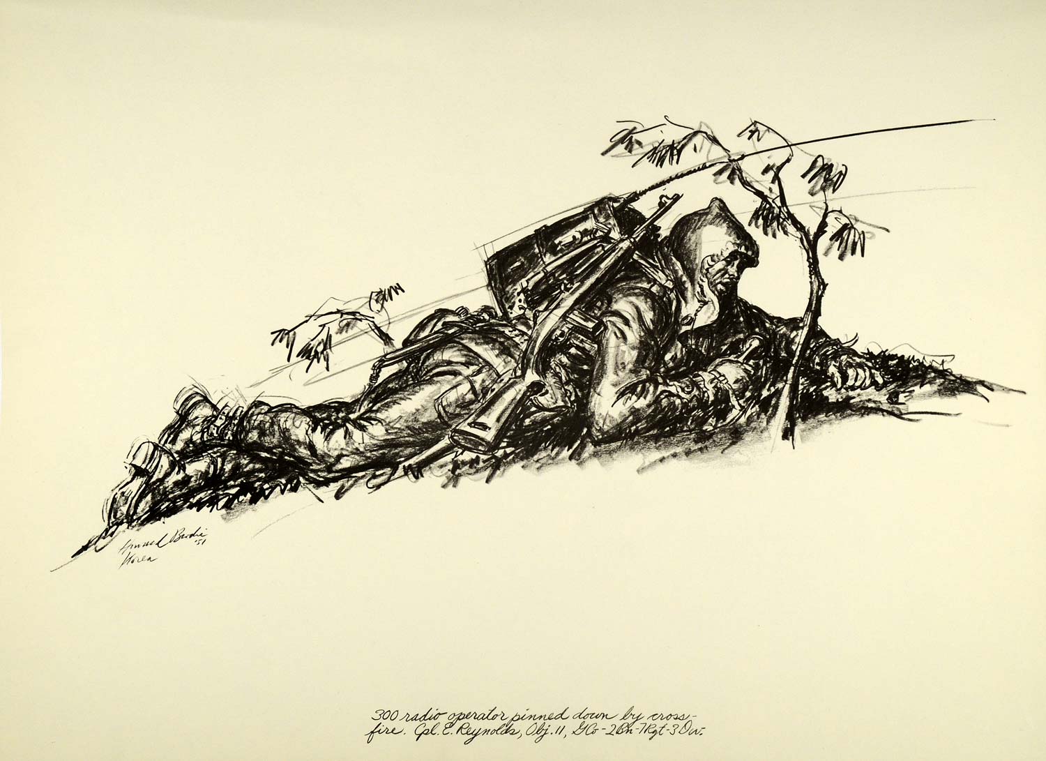 1963 Print Howard Brodie Art Korean War Corporal Edward Reynolds Radio Operator