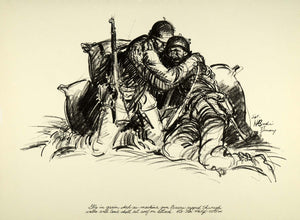 1963 Print Howard Brodie World War II Art GIs Soldiers K Company Under Attack