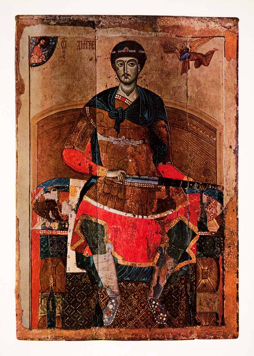 Keywords specific to this image: School of Vladimir Suzdal- Trej'jakov, Saint Demetrius of Thessaloniki, Christian martyr, Orthodox, religion, divine, Holy Spirit, Jesus, Christ, painting, iconography