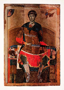This is an original 1963 color with metallic ink print of the Svet Dmitrij Solunskij Na Trone, also known as St. Demetrius of Salonica on his Throne located in the Tretyakov Gallery in Moscow.