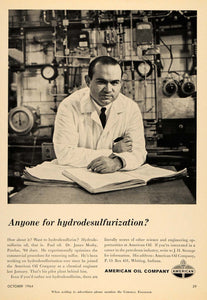 This is an original 1964 black and white print ad for the American Oil Company located in Whiting, Indiana.