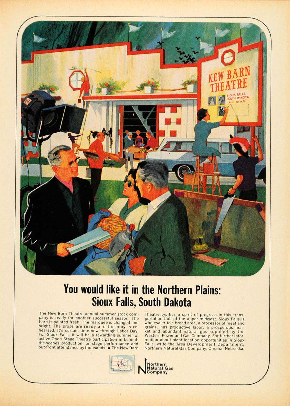 This is an original 1964 color print ad for the Northern Natural Gas Company, featuring an image of a movie set from Sioux Falls, South Dakota.