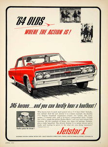 Keywords specific to this image: Vintage Advertising, Auto, Automobile, Automotive, Classic, Collector, Motor, Vehicle, General Motors Corporation, 345 hp, 394 Starfire Rocket V8 Engine, 3-Speed, Manual Transmission, 4-Barrel Carburetor, Hydra-Matic, Road, Test, Drive, Red, Olds