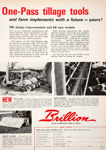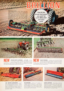 This is an original 1965 two-page color print ad for farming tools from Brillion Iron Works, Incorporation of Brillion, Wisconsin. Please see additional images.