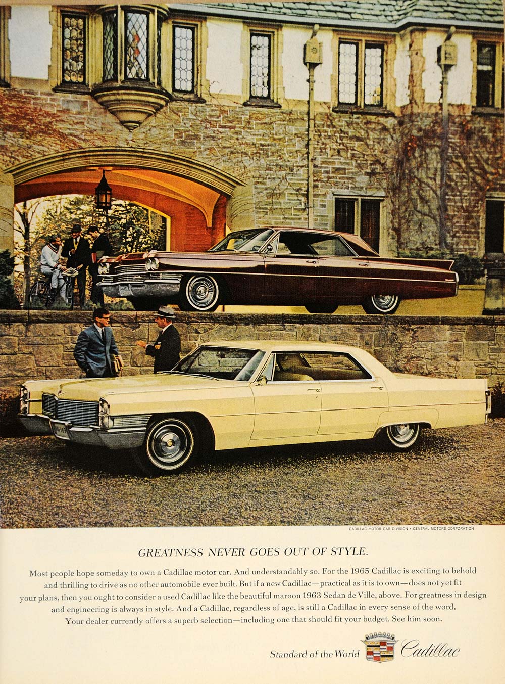 This is an original 1965 color print ad promoting the Cadillac 1963 Sedan de Ville automobile from Cadillac Motor Car Division, a General Motors Corporation.