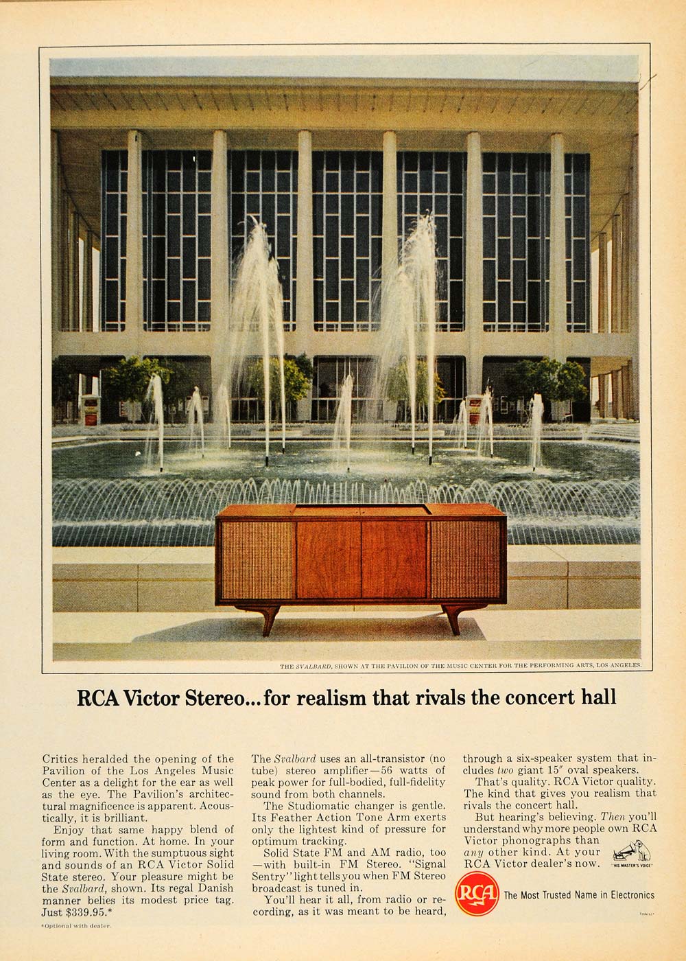 This ad features an image of the Svalbard, shown at the Pavilion of the Music Center for the Performing Arts in Los Angeles, CA.