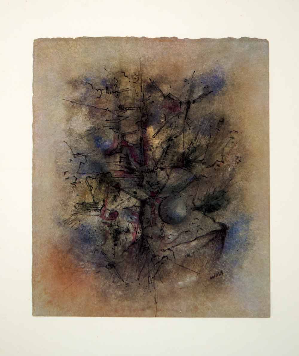 Wolfgang Wols (Alfred Otto Wolfgang Schulze) (1913-1951) was a German-born artist primarily active in France. His artistic stylings first came about when he studied photography at the Reiman-Schule, the Berlin School of Applied Arts around 1930. He began his career as a portrait photographer; however, his works generated such enthusiasm and inspiration that he was commissioned to photograph the 1937 Paris World Exhibition (also referred to as the Paris WorldÕs Fair or the Exposition Internationale des Arts et Techniques dans la Vie Moderne). Then, upon the onset of World War II, Wols was sent to an internment camp near Aix-en-Provence. One of the lucky few, Wols was able to escape the camp in 1940 and fled to Cassis near Marseilles. It was here that Wols immersed himself in drawings and watercolor paintings. Despite his lack of formal art education, WolsÕ works were exhibited at the Galerie Drouin and others. Wols was most recognized for his abstract paintings, graphic art designs and portrait photography.