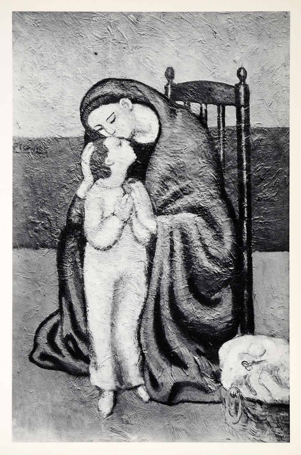 1965 Print Pablo Picasso Mother Child Kiss Goodnight Painterly Maternal Love Art