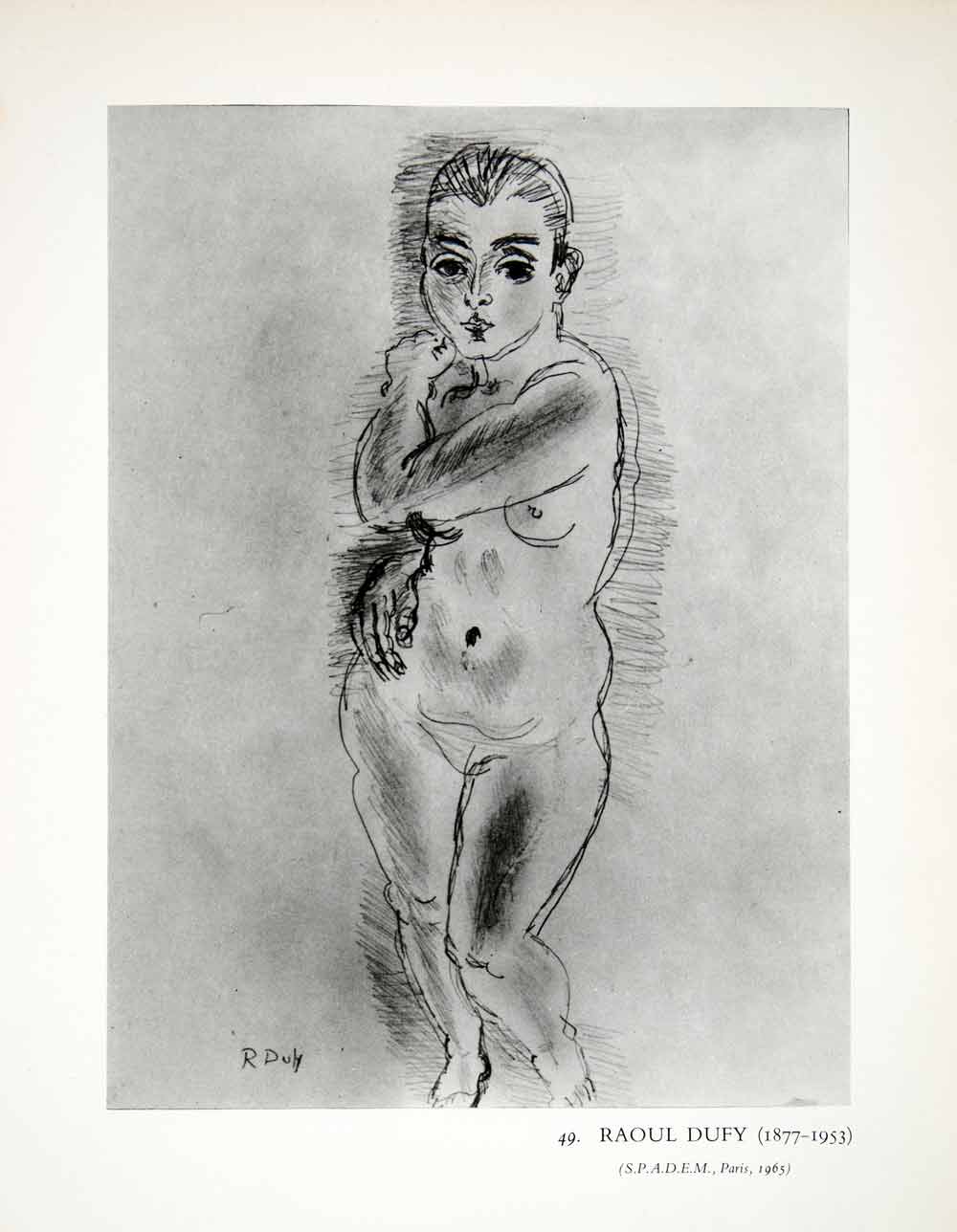 1965 Print Raoul Duffy Modern Pencil Art Standing Nude Woman Female Form XDE6