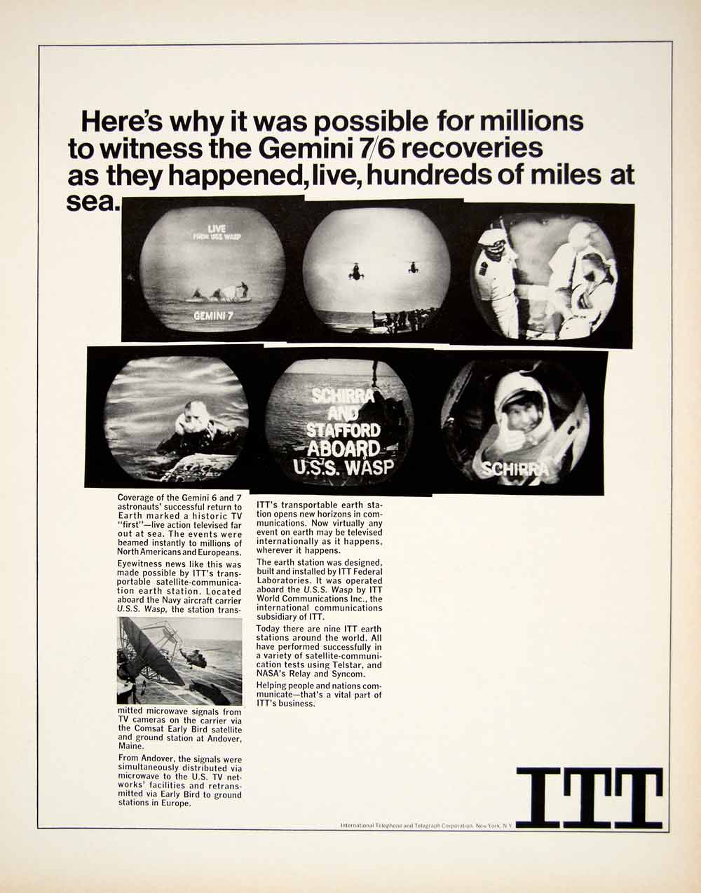 U.S.S. Wasp made possible the historic TV coverage of the sea recoveries of the Gemini 6 and 7 space capsules and their astronauts.