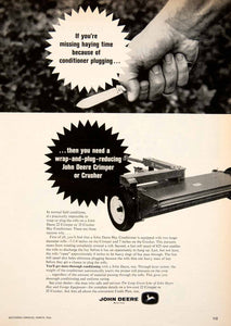 This is an original 1966 black and white print ad for the crimper or crusher from John Deere of Moline, Illinois.