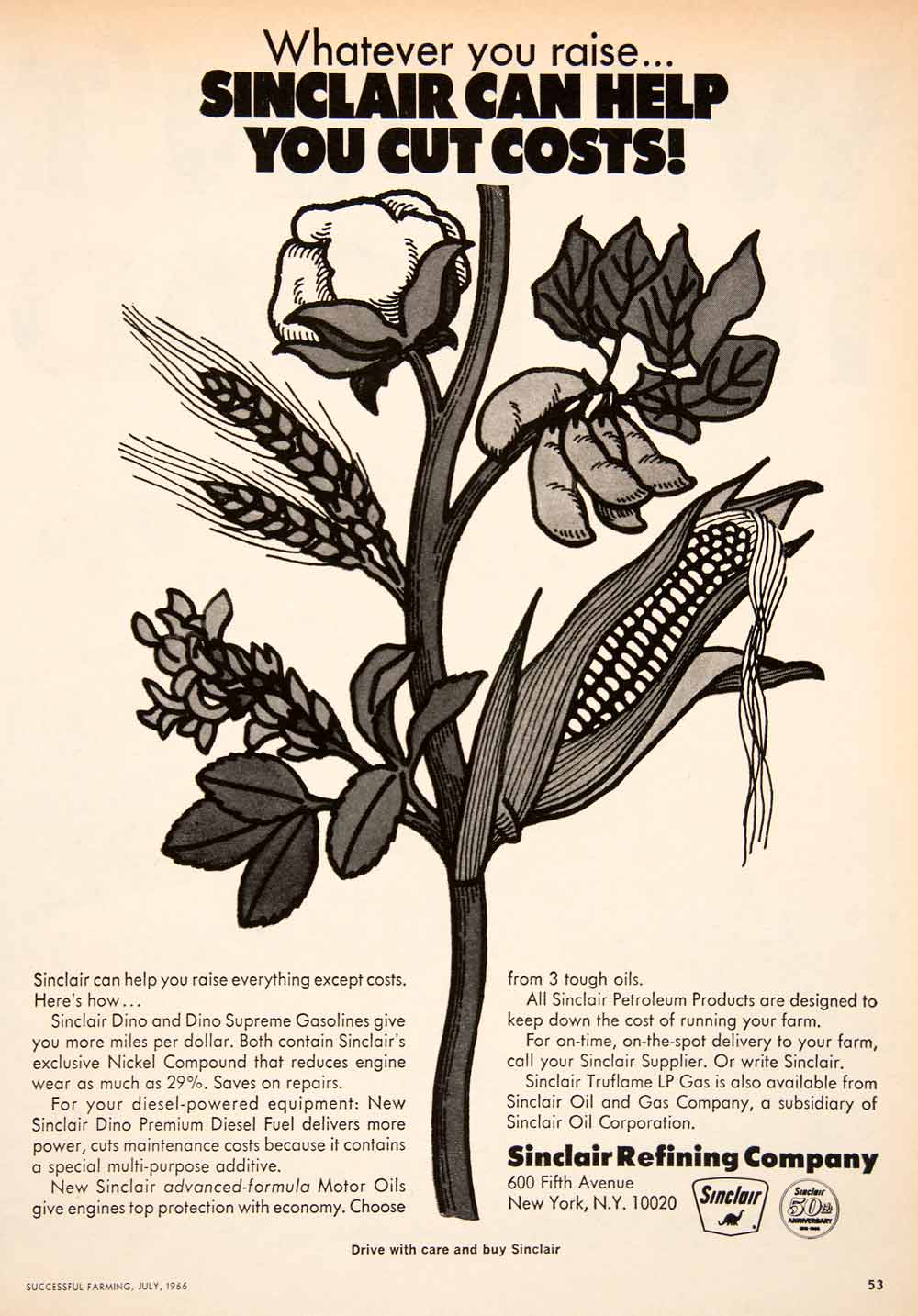 This is an original 1966 black and white print ad for the Sinclair Refining Company of 600 Fifth Avenue, New York.